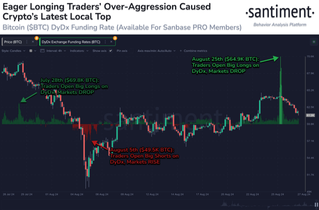 Meanwhile, based on figures provided by Santiment, long positions have been transpiring at the fastest rate since Bitcoin’s peak in March, which is indicative of a spike in market optimism-or perhaps greed-around August 25th.