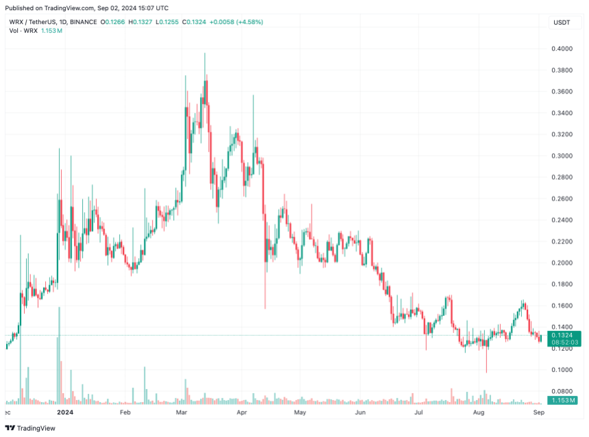 A look at the WRX token chart summarizes the exchange’s tumultuous journey since the hack. Since March 2024, when the token approached $0.37, it has been on a downward trajectory, hitting as low as $0.12 immediately following the theft.