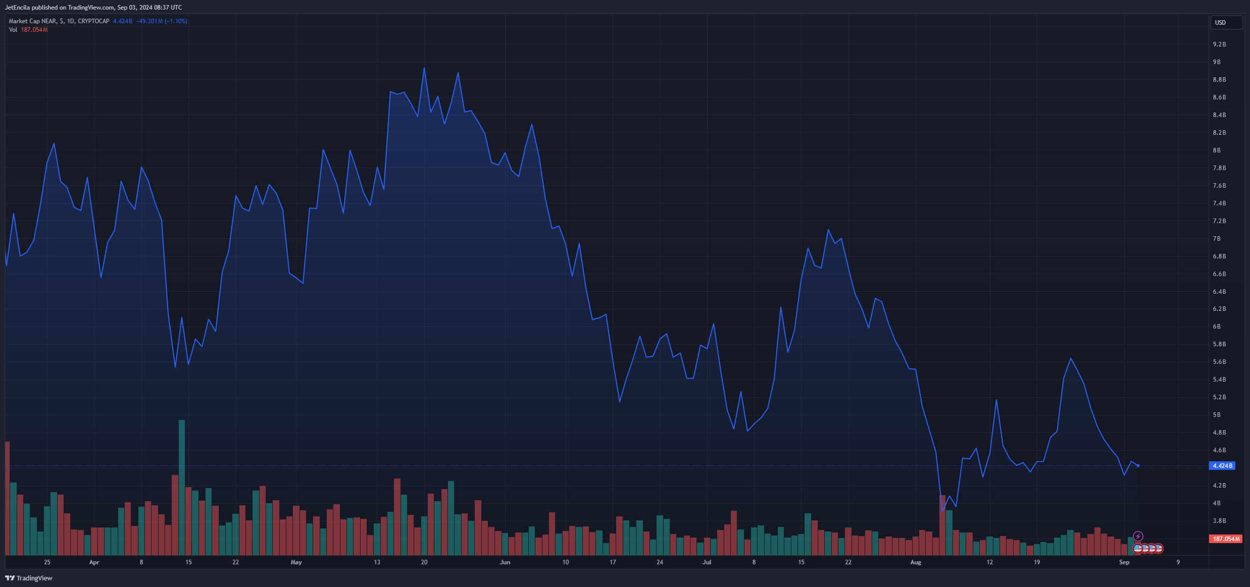 NEAR market cap currently at $4.41 billion. Chart: TradingView.com## NEAR On Goldilocks Zone Trading Range