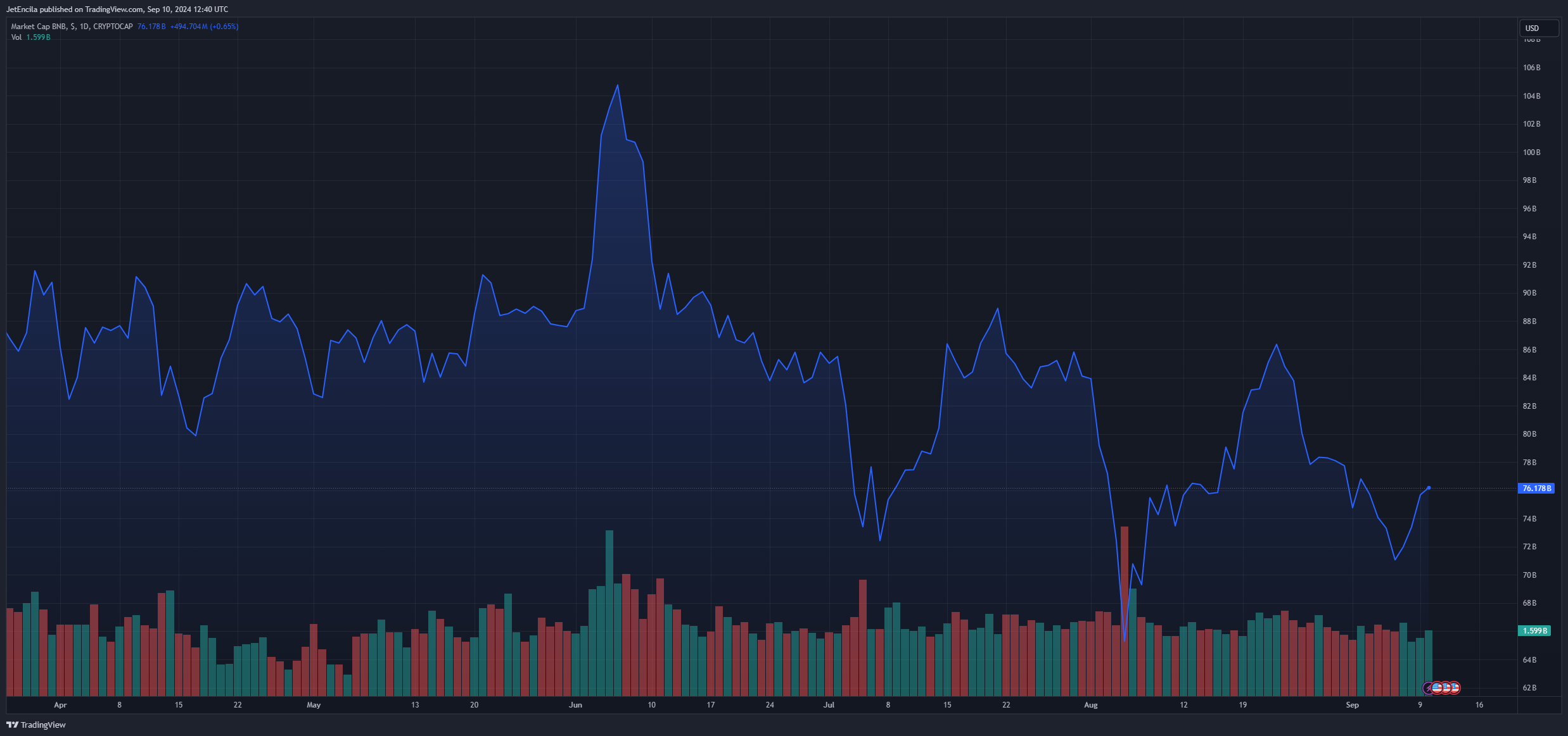 Since March, BNB has moved within a sideways pattern that posts heavy ups and downs. However, after every fall, BNB has strongly rebounded above $500, meaning that there is strong demand for the coin. For instance, on September 6, it fell as low as $470 but later rebounded to trade at $520 at press time.