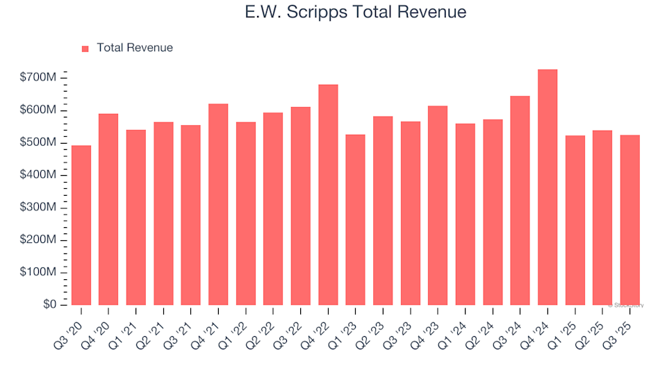 Цього кварталу ринок очікує зниження доходів E.W. Scripps на 24,2% у порівнянні з минулим роком, що є поверненням до рівня, нижчого за 18,3%, яке компанія зафіксувала в тому ж кварталі минулого року.