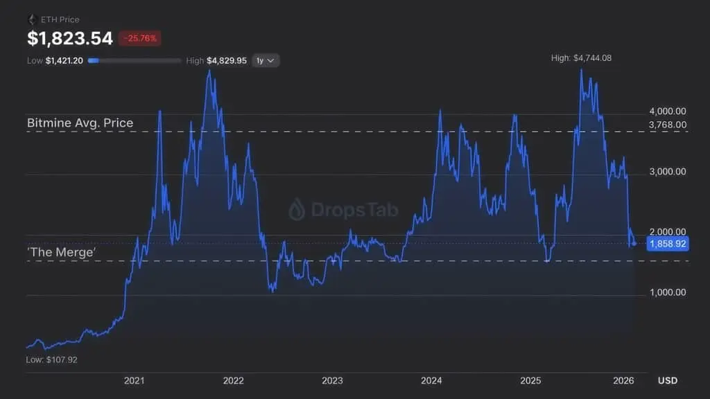 З історичних даних видно, що за останні 24 години ETH знизився на 1.82%, за 7 днів — на 2.58%, а за місяць — на 35.00%.