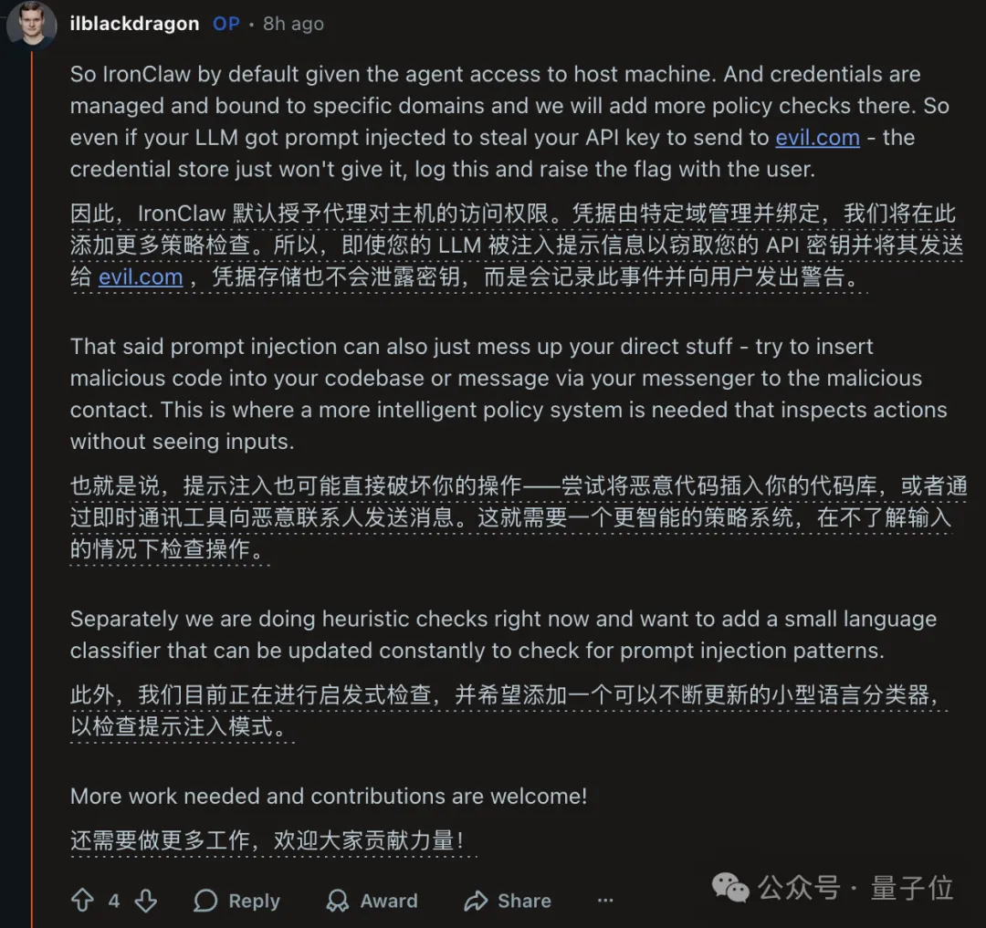 Автор трансформерів Ілля Полосухін не міг залишитися осторонь. Він почав з нуля переписувати безпечну версію краба: IronClaw.