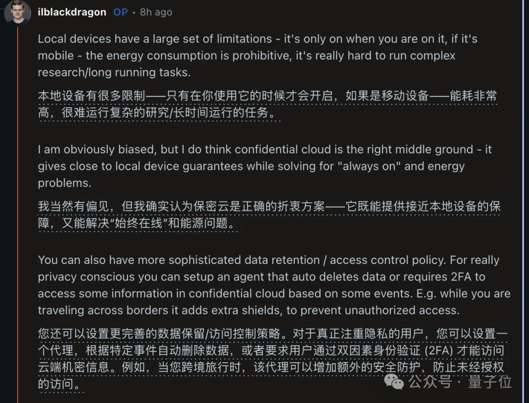 Він вважає, що конфіденційне хмарне рішення — найкращий компроміс, що забезпечує приватність, близьку до локальної, і водночас вирішує проблему “постійної онлайн-діяльності”.