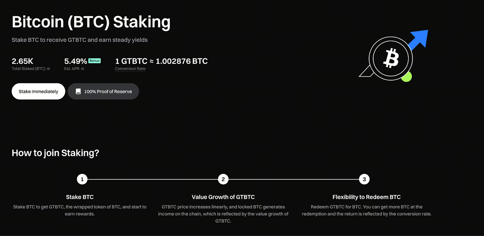 Khi tham gia staking trên nền tảng hoặc các cơ chế kiếm lợi nhuận trên chuỗi, người dùng chuyển đổi BTC sang GTBTC. Tài sản này vừa duy trì liên kết giá với BTC, vừa cho phép tích lũy lợi suất liên tục.