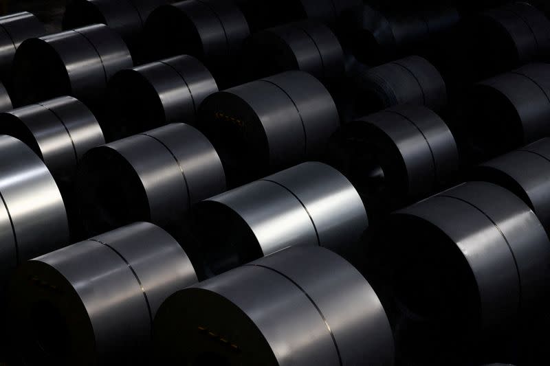 HÌNH ẢNH TƯ LIỆU: Cuộn thép được trưng bày tại một nhà máy thép của ThyssenKrupp ở Duisburg, Đức, ngày 5 tháng 11 năm 2025. REUTERS/Leon Kuegeler TPX IMAGES OF THE DAY/Hình ảnh lưu trữ · Reuters