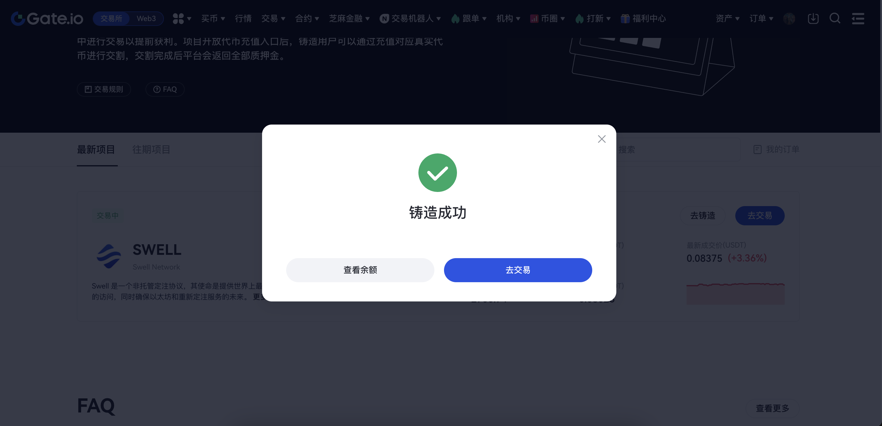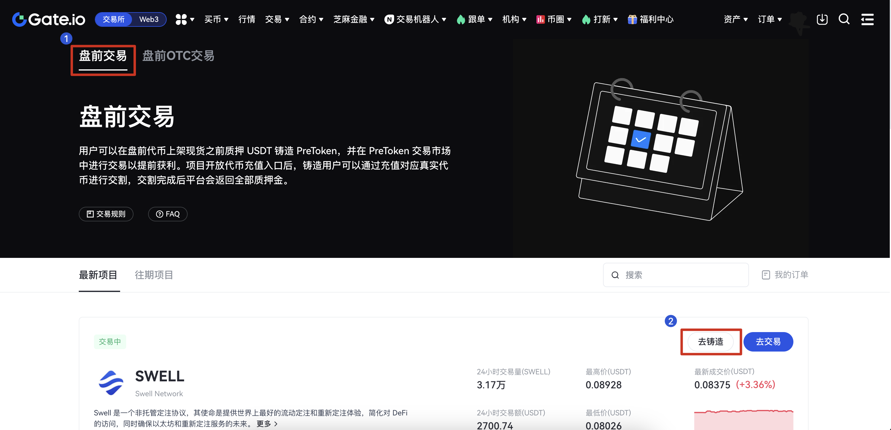 在盤前交易頁面選擇您要鑄造的盤前交易代幣,並點擊“去鑄造”按鈕。