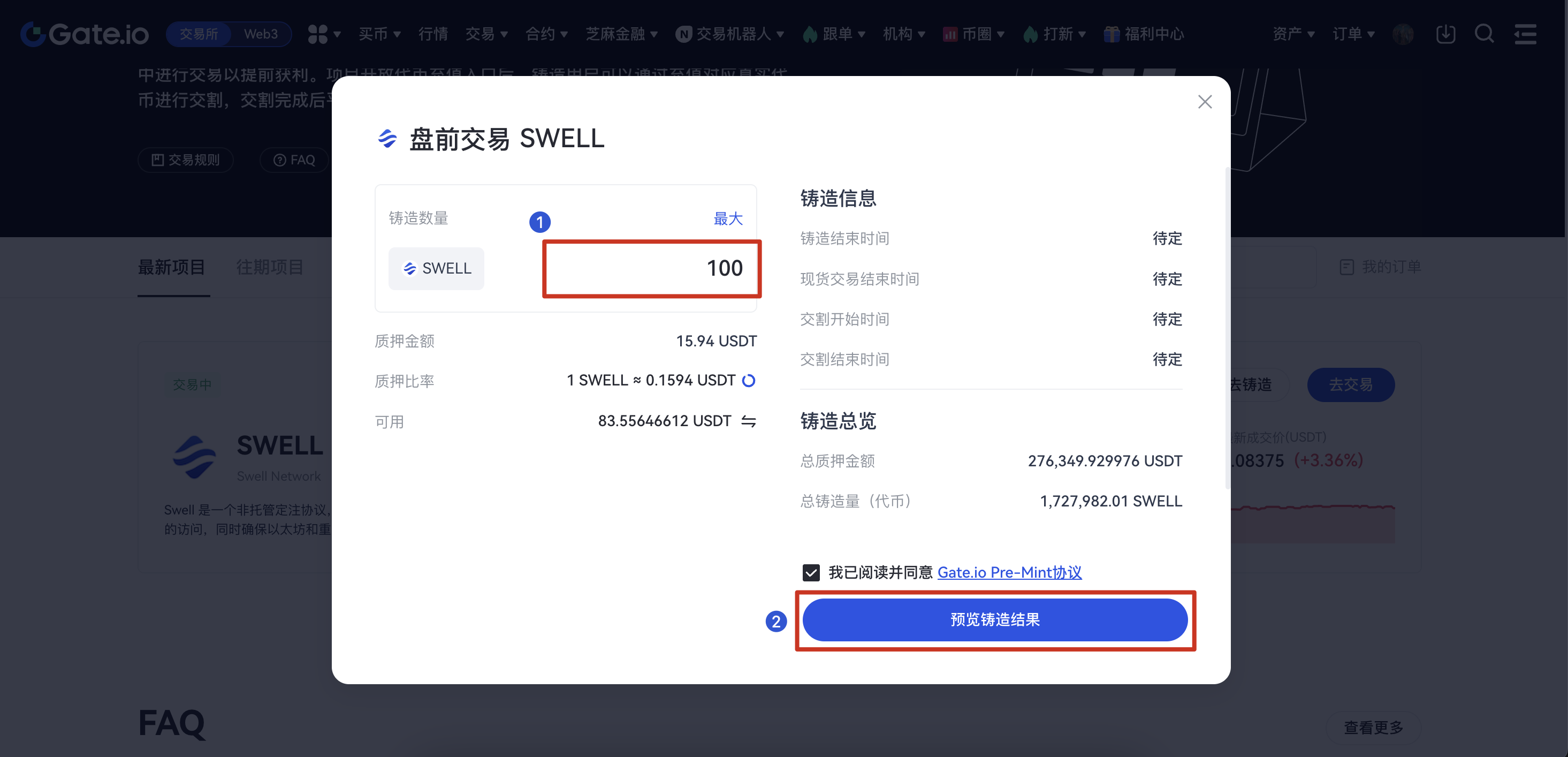 如何創建盤前交易訂單,鑄造PreToken