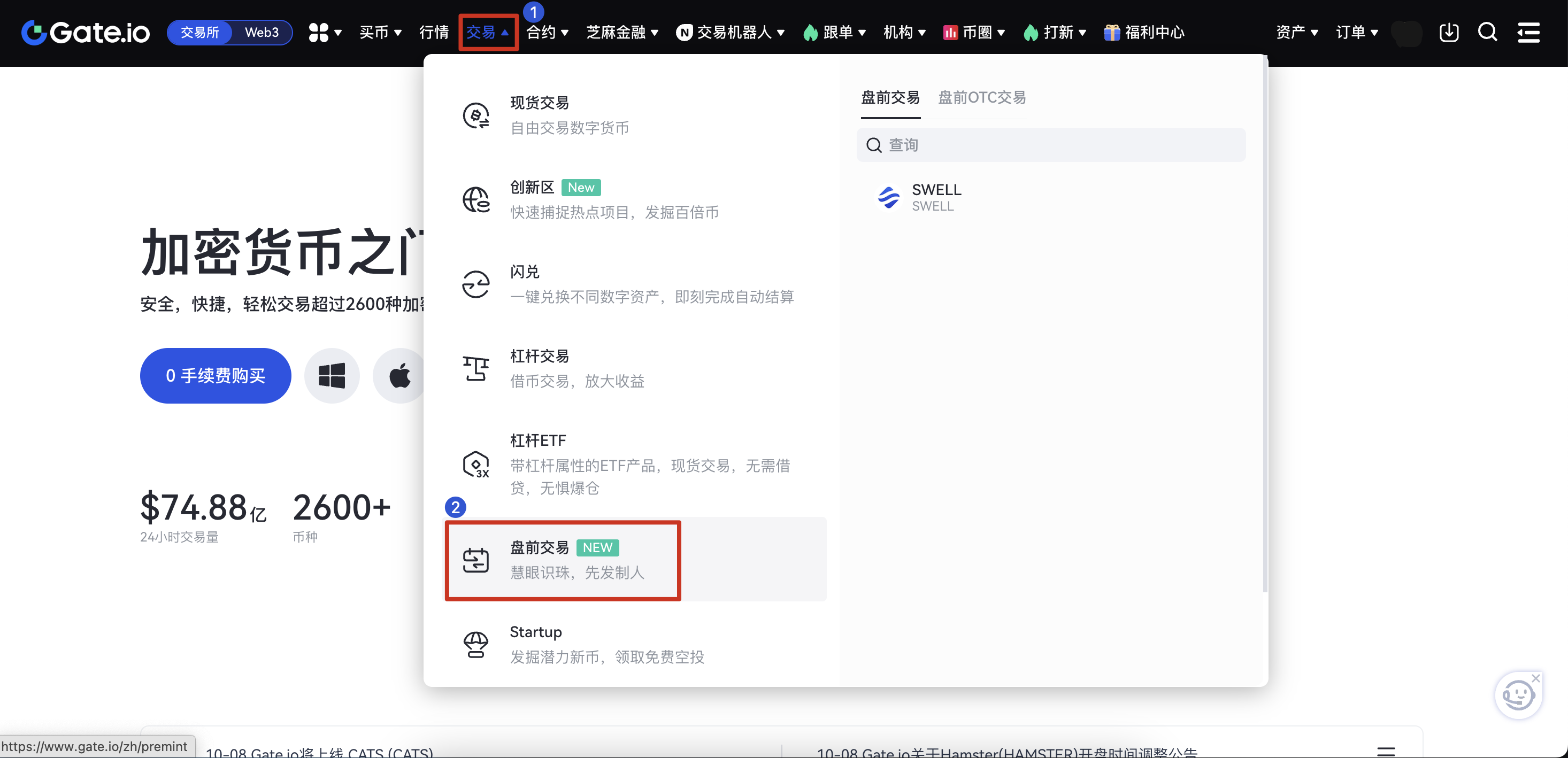在盤前交易頁面選擇您要鑄造的盤前交易代幣,並點擊“去交易”按鈕。