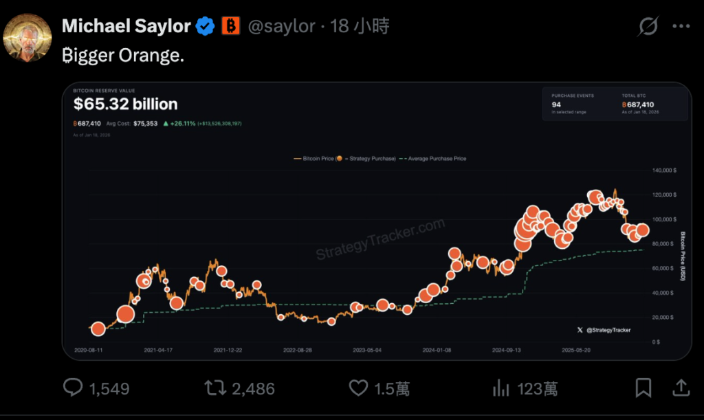 (前情提要:狂買!微策略 Strategy 砸 12.5 億美元加碼 1.3 萬枚比特幣,總持倉突破 68.7 萬枚 BTC)