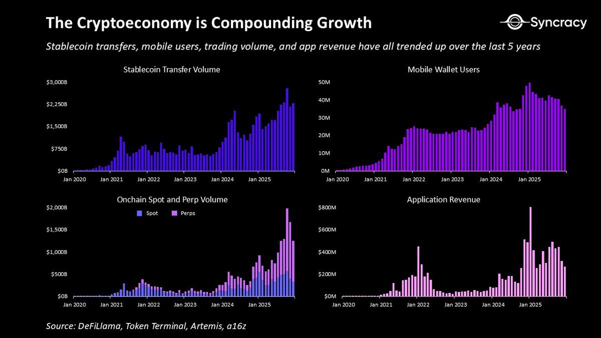 這並不是該行業迄今為止構建的所有價值用例的詳盡清單。但重點在於,其中許多用例正在展現真實價值,無論加密資產的價格走勢如何,它們都在持續成長。