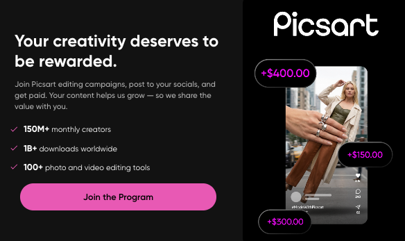 Picsart 推出「Earn with Picsart」分潤計畫,以互動率計算收益,無門檻開放創作者參與,強化 AI 設計生態。