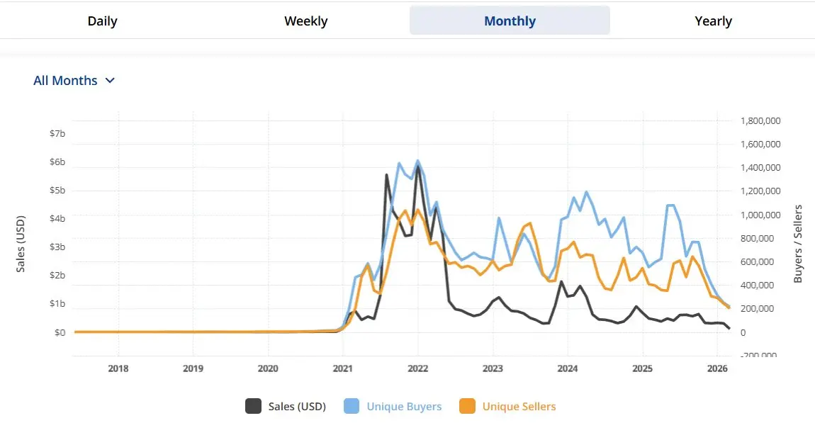 數據:NFT 市場 3 月銷售額跌至 2021 年以來新低