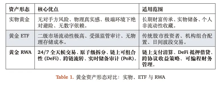 类似的,尽管黄金ETF 在传统框架下为投资黄金提供了便利,但在“链上”的背景下,其适配性与灵活性明显不足,难以满足去中心化时代对资产“高活性、可调用、可组合”的核心要求。具体来说,黄金ETF 作为连接黄金市场与金融市场的重要工具,使投资者无需实际持有实物黄金即可获取价格敞口。但其本质仍是传统金融体系内的受限产品,特别的,黄金ETF 属于证券化资产,无法实现点对点转账或实时结算,难以用于支付,更不具备嵌入链上金融协议的能力。