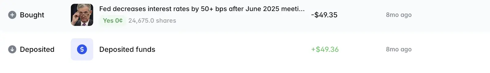 你知道最后是什么帮了我?我当时就在篮球场上,掏出手机,在 Polymarket 上投了 50 美元,纯粹是为了尝试。不是 5000 美元,只是 50 美元。筹码很低,真金白银入场,几乎没有赢的机会——但我就是想感受一下下注是什么感觉。