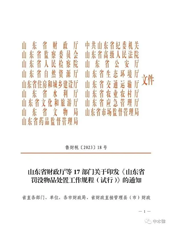 2023年8月25日,山东省财政厅等17部门关于印发《山东省罚没物品处置工作流程(试行)》的通知(以下简称“《通知》”),该《通知》从法的位阶上来讲,属于地方政府规章。地方政府规章是省、自治区、直辖市、设区的市、自治州的人民政府等,可以根据法律、行政法规和本省、自治区、直辖市的地方性法规,制定规章。