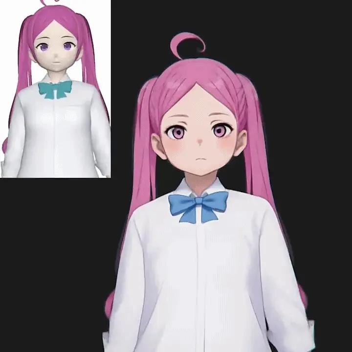 在制作出成品的AI动画之前,大神也是经过了一段时间的测试。大神尝试将在Blender中导出的CG用StableDiffusion转换成动画风格。