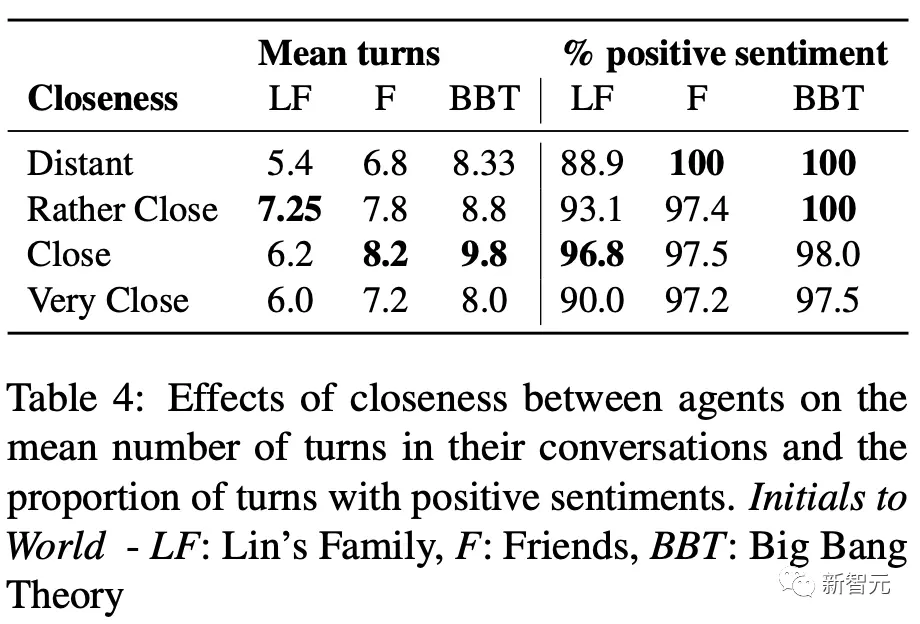 另外,作者还研究了初始关系亲密度对2个Agent之间对话的影响。