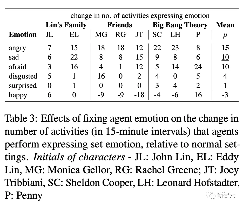 如上表所示,愤怒对行为主体影响最大(+15个活动) ,其次是悲伤和恐惧(各+10) ,然后是厌恶(+4)和惊讶(+1) ,最后是快乐(-2)。