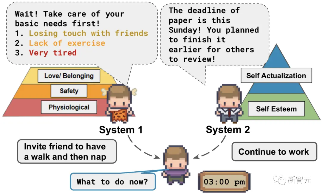 如果仅靠系统2的规划,就可以让智能体规划休息时间,满足基本的需求。