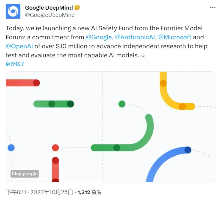 巴比特讯,10 月 25 日,谷歌 DeepMind 联合 Anthropic、微软和 OpenAI 推出 1000 万美元人工智能安全基金,用于推进独立研究,以帮助测试和评估最有能力的人工智能模型。
