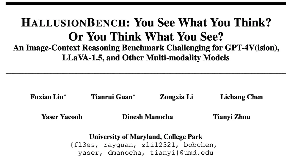 马里兰大学发布首个专为VLM设计的基准测试HallusionBench,全面测试GPT-4V视觉错误和语言幻觉。