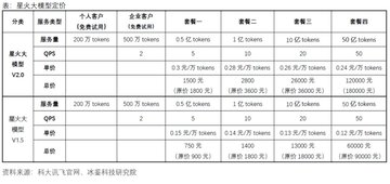 具体来讲,科大讯飞目前对外开放了星火大模型V1.5、V2.0和V3.0等三个版本,其刊例价分别为0.18元/万tokens、0.36元/万tokens、0.36元/万tokens。目前针对个人客户可以免费试用200万tokens,针对企业客户可以免费试用500万tokens。就企业客户而言,科大讯飞为每个版本的大模型各推出了四个收费套餐,其中V3.0和V2.0版本价格相同,且是V1.5的两倍,具体价格如下表: