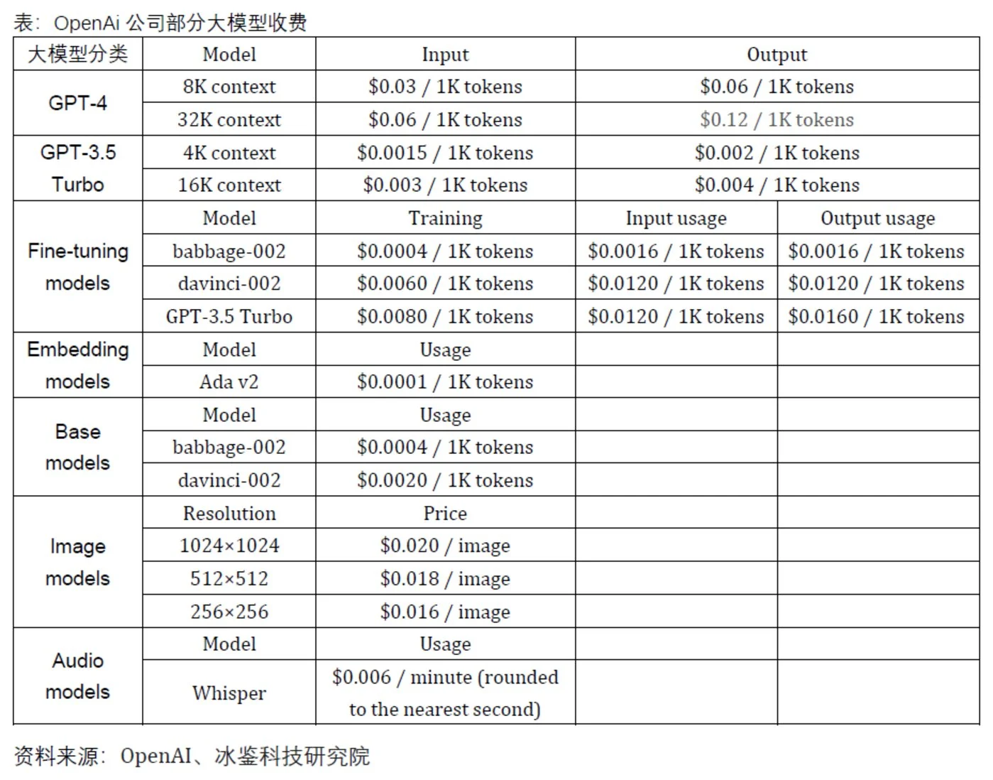 按照tokens计算,各家公司部分大模型的输入和输出计价如下图: