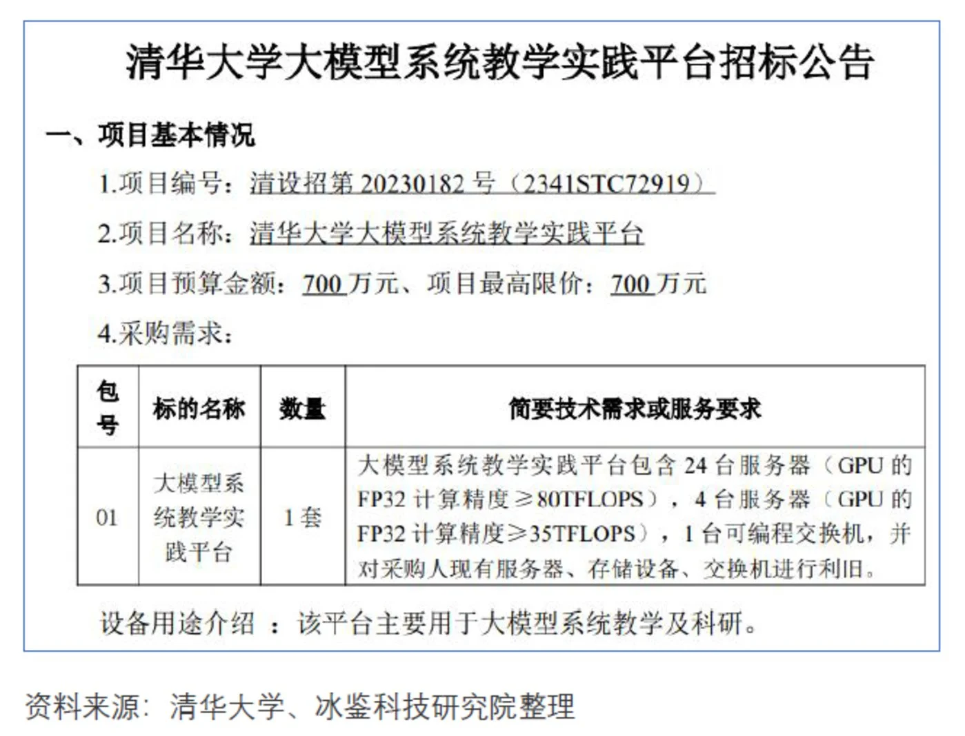 对于大型企事业单位,如银行、保险、信托公司、高校等,偏爱大模型企业提供定制化服务或者一站式服务。服务内容不仅包括大模型系统,还包括服务器等硬件产品等一站式解决方案。如近期清华大学准备花费700万元,公开采购大模型系统教学实践平台。该采购不仅包括大模型系统,还包括24台服务器(GPU的FP32计算精度≥80TFLOPS),4台服务器(GPU的FP32计算精度≥35TFLOPS),1台可编程交换机。山东商业职业技术学院云计算产业学院发布大模型技术赋能中心采购项目,预算116.466万元,也要求提供相关硬件产品。