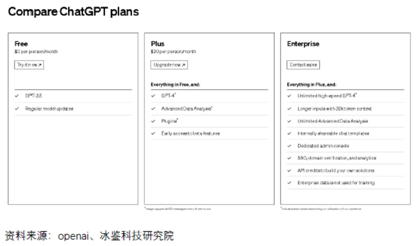 除此之外,OpenAI公司推出的ChatGPT,针对客户也有按月付费的服务,目前为每人每月20美元。除此之外,OpenAI通过客户注册账户使用的企业电子邮箱统计分析发现,已经有80%的世界五百强企业员工开始使用ChatGPT进行工作。