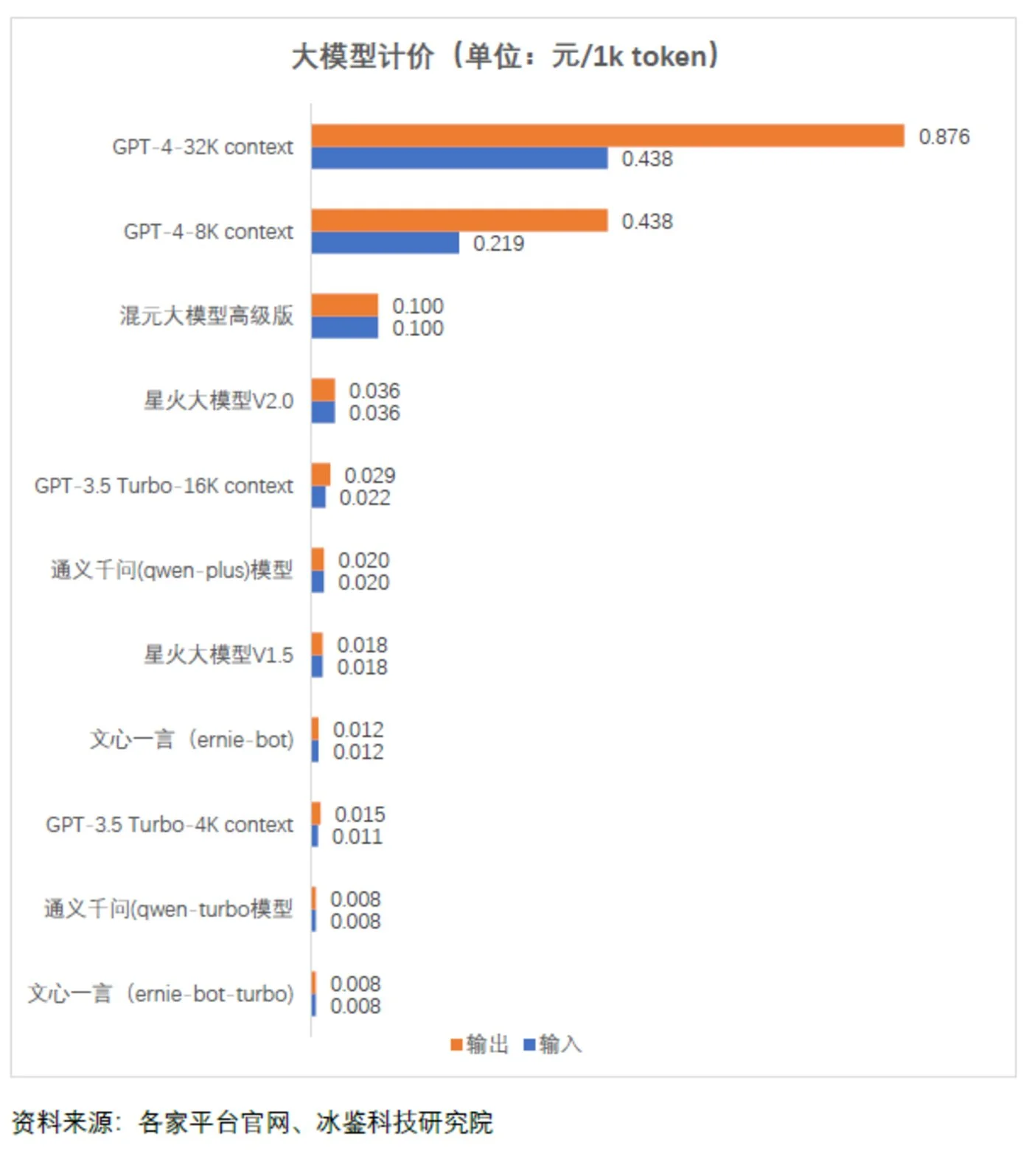 国内国外大模型定价相差百倍,文心一言和通义千问(qwen-turbo)仅0.008元/1k token。