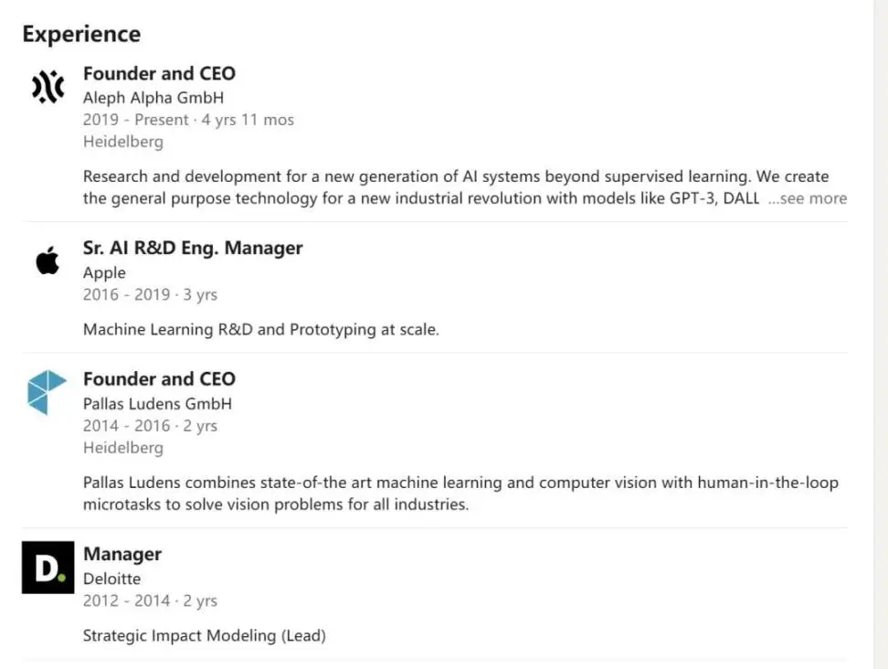不过,早在 2021 年,Aleph Alpha 就拿到了来自 Earlybird VC、Lakestar 和 UVC Partners 的 2700 万美元 A 轮融资,而在此之前,LEA Partners、468 Capital 和 Cavalry Ventures 曾于 2020 年 11 月为 Aleph Alpha 提供了 530 万欧元的种子轮融资。