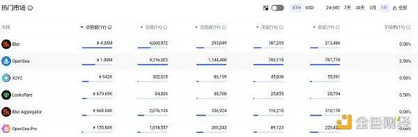但是 OpenSea 的 NFT 市场龙头地位却在这轮回暖行情中被超越,根据 NFTGO 数据显示,近一年 OpenSea 的交易额已远低于 Blur,并且仅领先 X2Y2 一倍。