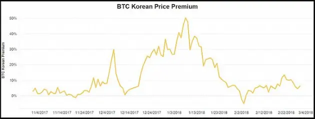 当地比特币价格比美国交易所高出 40% 时,Coinmarketcap 甚至将韩国的价格从加密货币行情中删除。这种现象后来被大家称为「泡菜溢价」。