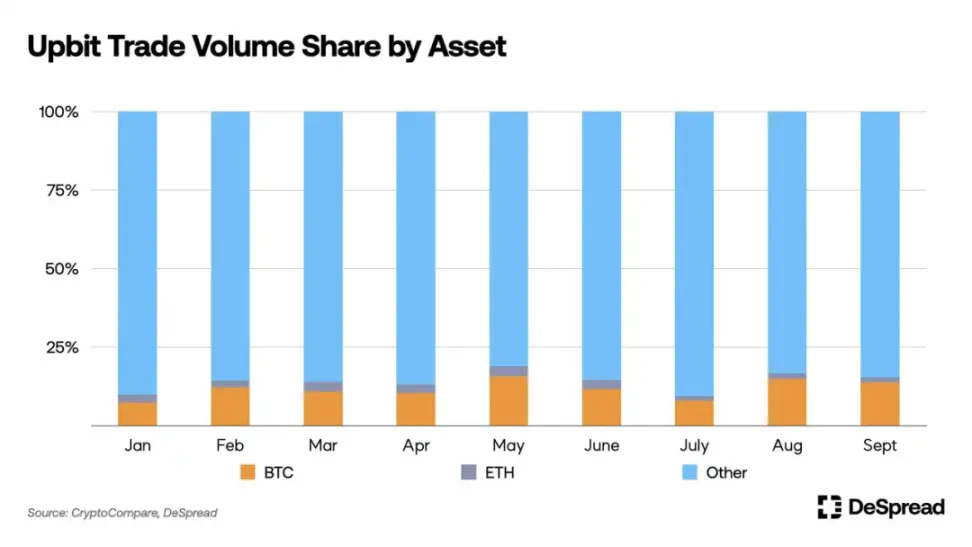 在 Upbit 的用户群中,大多数个人投资者同样更喜欢高额利润的山寨币,因为它们的风险较高,这是山寨币交易在韩国加密货币市场如此受欢迎的主要原因。