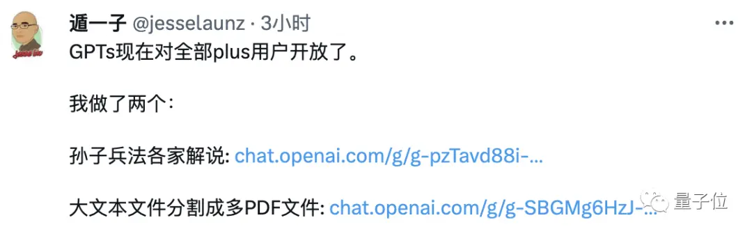 生成的定制版GPT可以通过链接进行分享,OpenAI的开发者大会上也宣布推出“GPTs store”,让创作者分享自己的定制机器人,不过目前在ChatGPT当中还没有看到入口。
