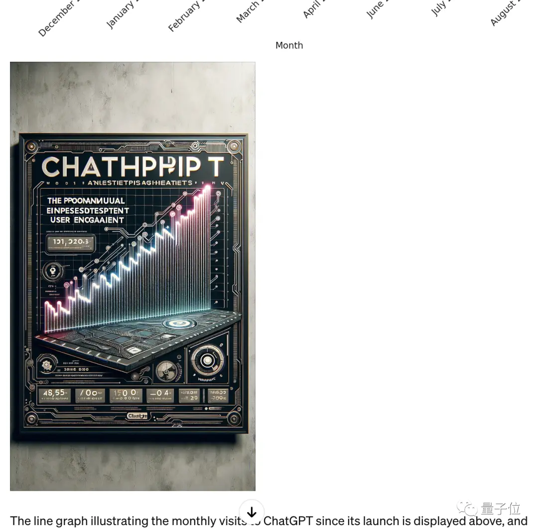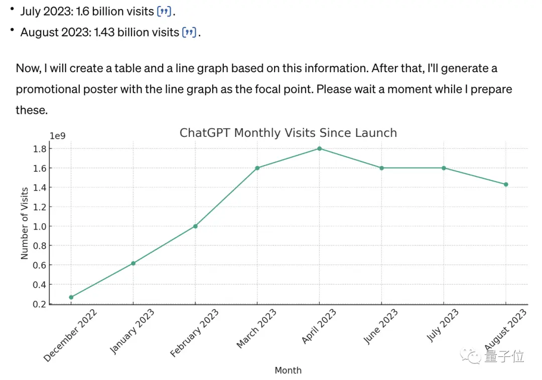 检索ChatGPT上线以来每月访问量数据(联网),制作成表格并绘制成折线图(数据分析,原代码解释器),然后以此为题画一幅宣传海报(DALL·E-3)