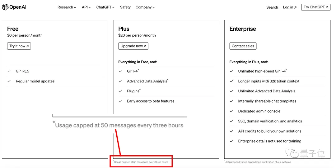 但在OpenAI的用户计划比较页面中,这一提示还没有被删去。