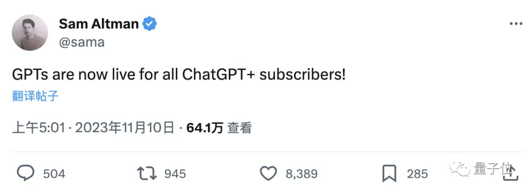 在正式宣布恢复正常前20分钟,OpenAI CEO奥特曼也带来了另一个振奋人心的消息——