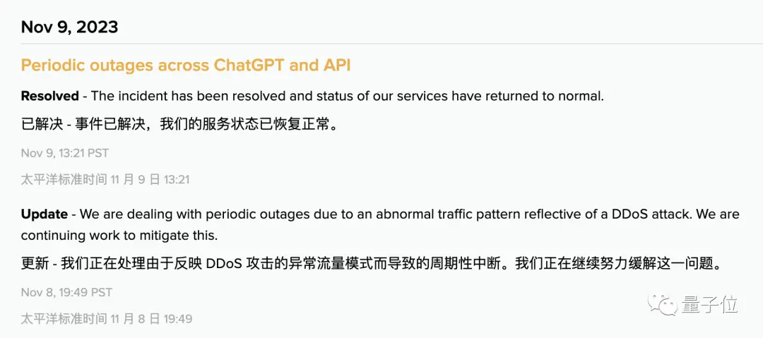 让全球网友崩溃的ChatGPT宕机事件,有了最新消息。