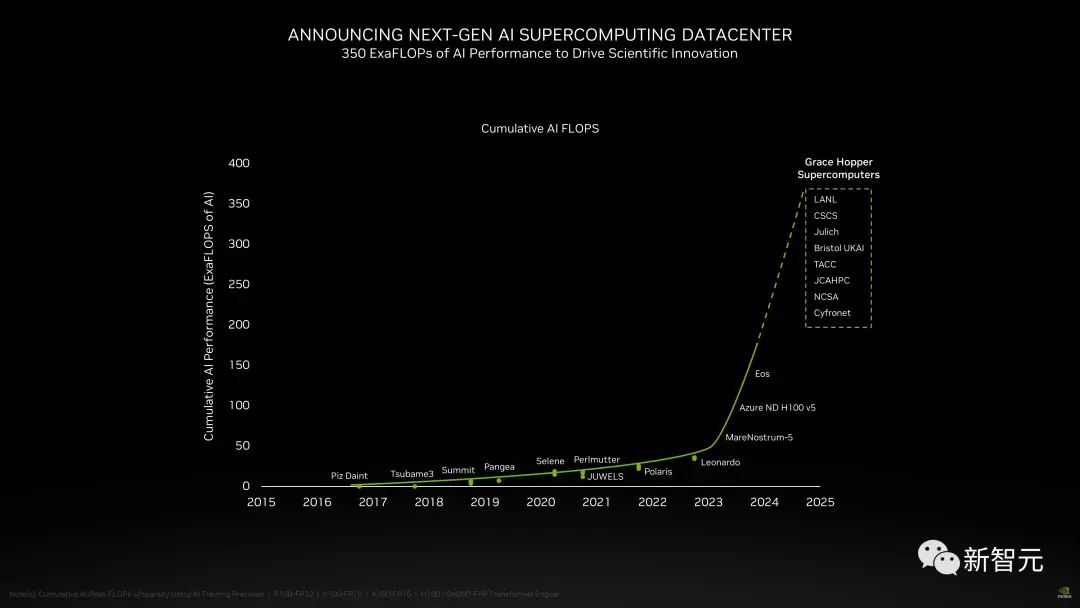 它能提供93 Exaflops的低精度AI算力和1 Exaflop的高精度(FP64)算力。这台超级计算机预计将于2024年安装完毕。