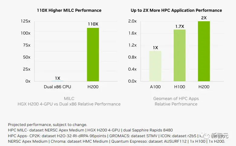 相较于H100,H200在处理高性能计算的应用程序上也有20%以上的提升。