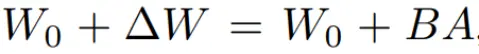 ,训练过程中,W_0 保持不变,梯度更新只应用于 A 和 B 两个参数。因而对于输入 x,前向传播的更改表述为: