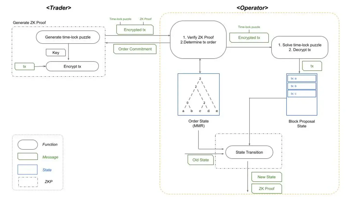 4)Radius 与其他方案的实现机制均不同的是它通过启用加密 Mempool 和让多个排序器同时运行来确保 Rollup 交易被无需信任地排序,通过这种方式来消除 MEV 带来的相关风险。它采用可验证延迟加密机制(PVDE)【7】来实现 Mempool 的加密,采用零知识证明加密方式来确保交易的无信任排序和防止中心化排序器相关风险。不过用零知识证明来提升安全性的代价是,虽然有 MEV 保护但对用户来说可能会出现交易延迟等问题。Radius 的交易流程如下: