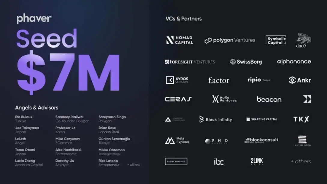 日前,Web3 社交应用 Phaver 宣布完成了 700 万美元的种子轮融资,参投方包括 Polygon Ventures、Nomad Capital、Symbolic Capital、dao5、Foresight Ventures、Alphanonce、f.actor、Superhero Capital、SwissBorg 等。