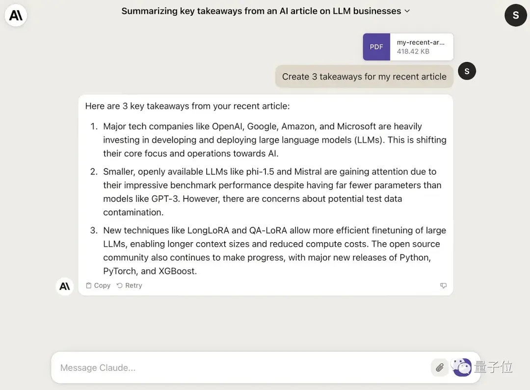 此前GPT-4上下文长度还是32k时,竞品Claude 2就将上下文推进到100k tokens,且支持PDF文件输入。