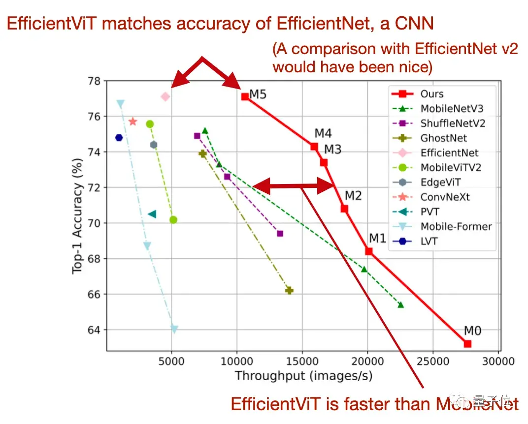 相比原来的MobileViT,EfficientViT方法最多快了6倍。