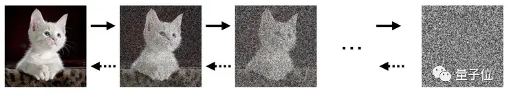 模型训练时,逐渐往训练数据中掺入噪声,直到变成纯噪声。然后再训练一个神经网络,让模型反向学习去噪,从噪声中合成数据。