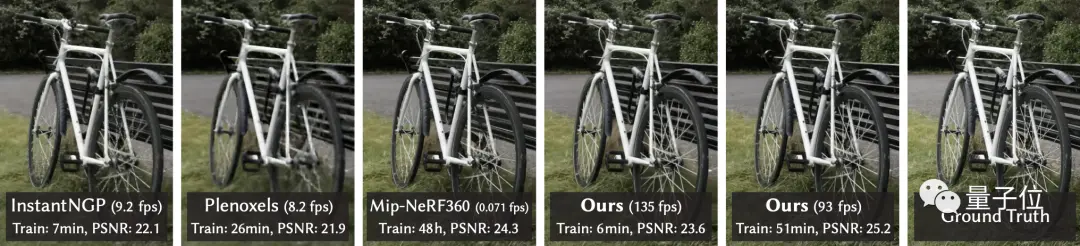 只用很少的训练时间,Gaussian Splatting可以达到InstantNGP的最高质量,训练51分钟,性能甚至比Mip-NeRF360要好。