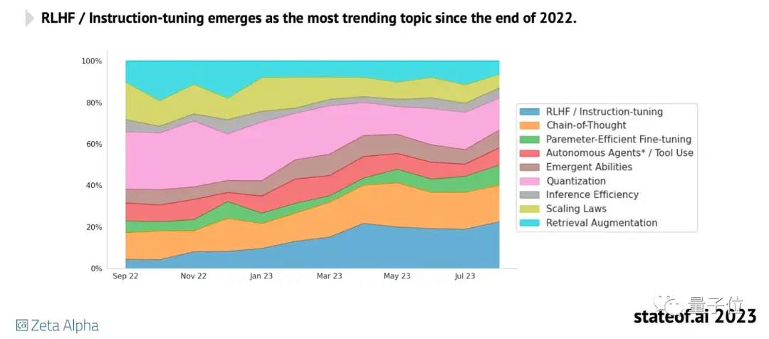 但分析公司stateof.ai发布的“2023AI现状报告”中显示,它还没有被广泛运用,可能是因为实现起来比较复杂。目前大多开源项目仍然专注于指令微调。